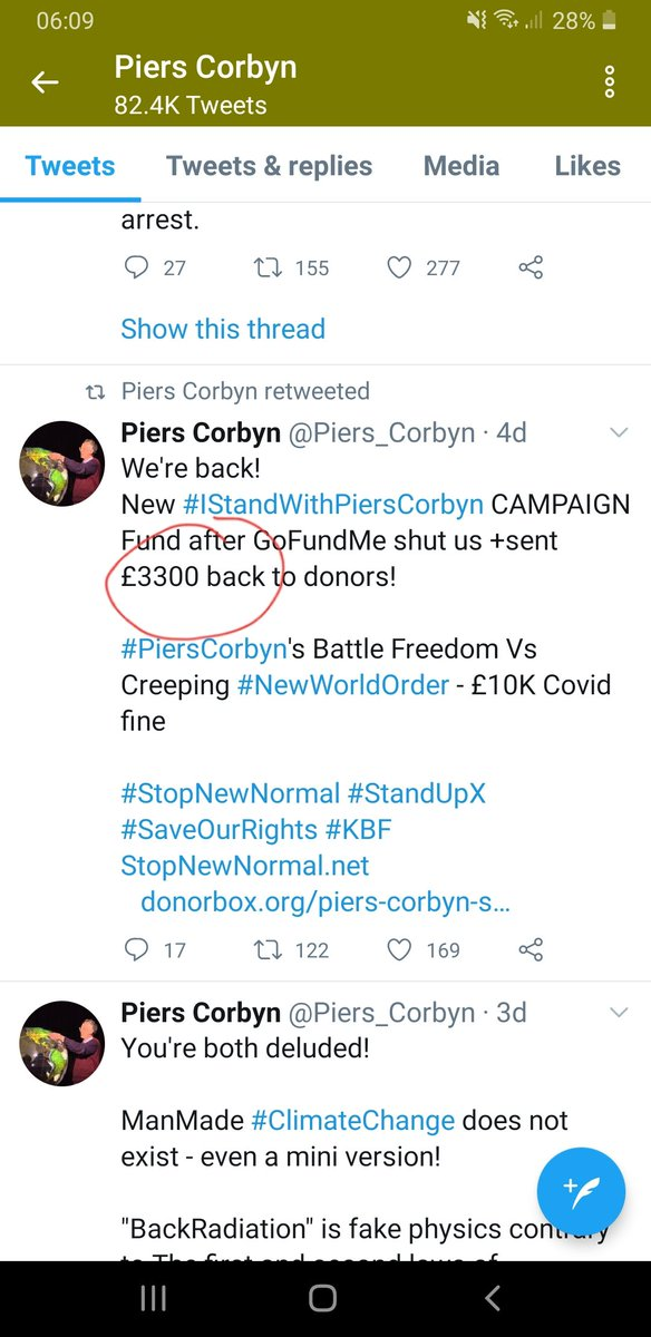 So, not only does Piers Corbyn fake arrests to con people out of money, he also uses gematria (Jewish numerology) to code his tweets and mock his supporters for doing it! There was also a news report about his poncing when it reached £18k (18=3 6s =666).