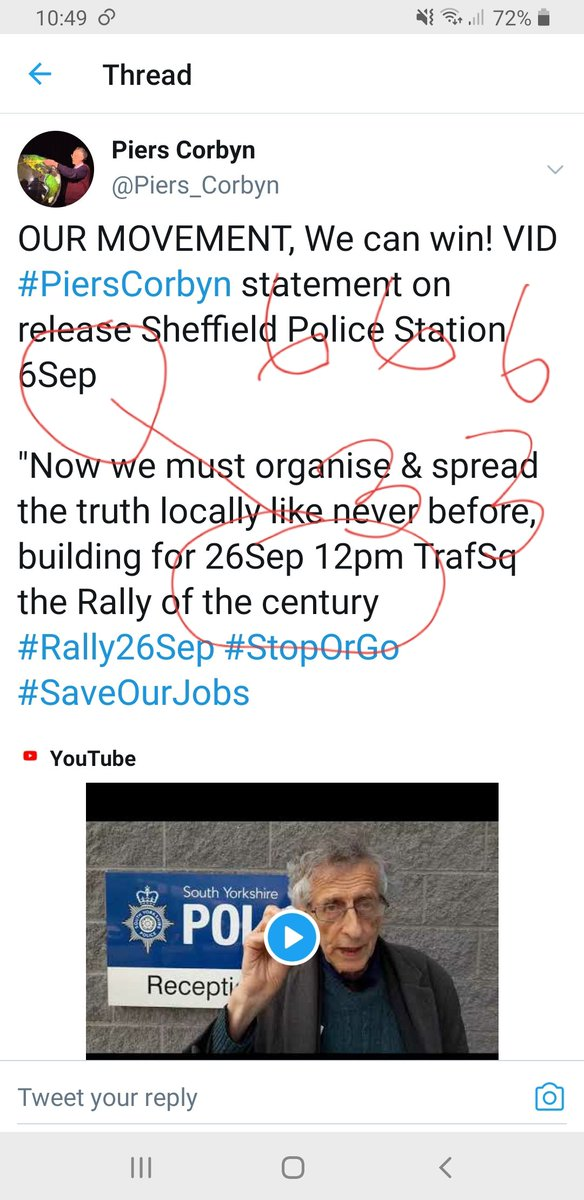 Prior to this little stunt in Sheffield, Corbyn had already faked several arrests in order to set up crowdfunding appeals for fines that were never issued because freemasons do not get charged and, as I keep saying – Piers Corbyn is a freemason. Note the fact that these hearings are conveniently kept away from the public – because there was no hearing.