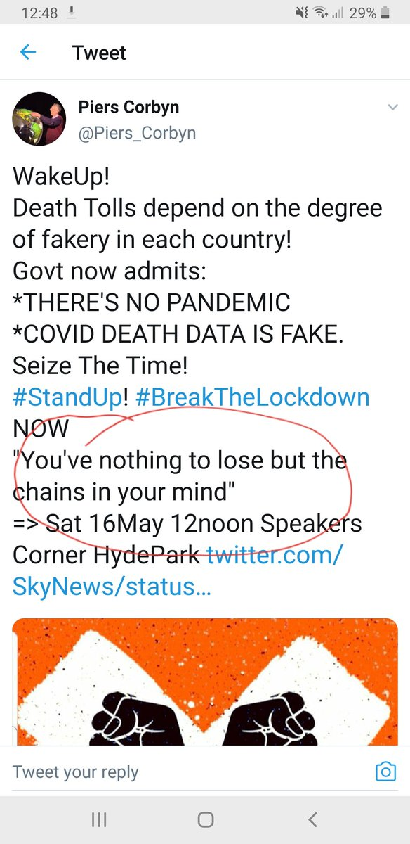 So to recap we have an establishment Marxist from Imperial College London (ring any bells?) who just so happens to be the brother of freemason and ex-Labour leader Jeremy Corbyn who started a Marxist group in the 1970s and happens to use freemasonic codes all over his tweets and take part in freemasonic staged arrests leading some ‘freedom’ movement, appearing on MSM (who ONLY ever promote their own WITHOUT EXCEPTION) in a live interview because he is part of the same team and will say what they want him to say to give whatever headline they want. Do you honestly think they would interview someone like me on live TV where I could say anything I wanted? About these codes they don’t want me mentioning (hence my sudden twitter bans…).