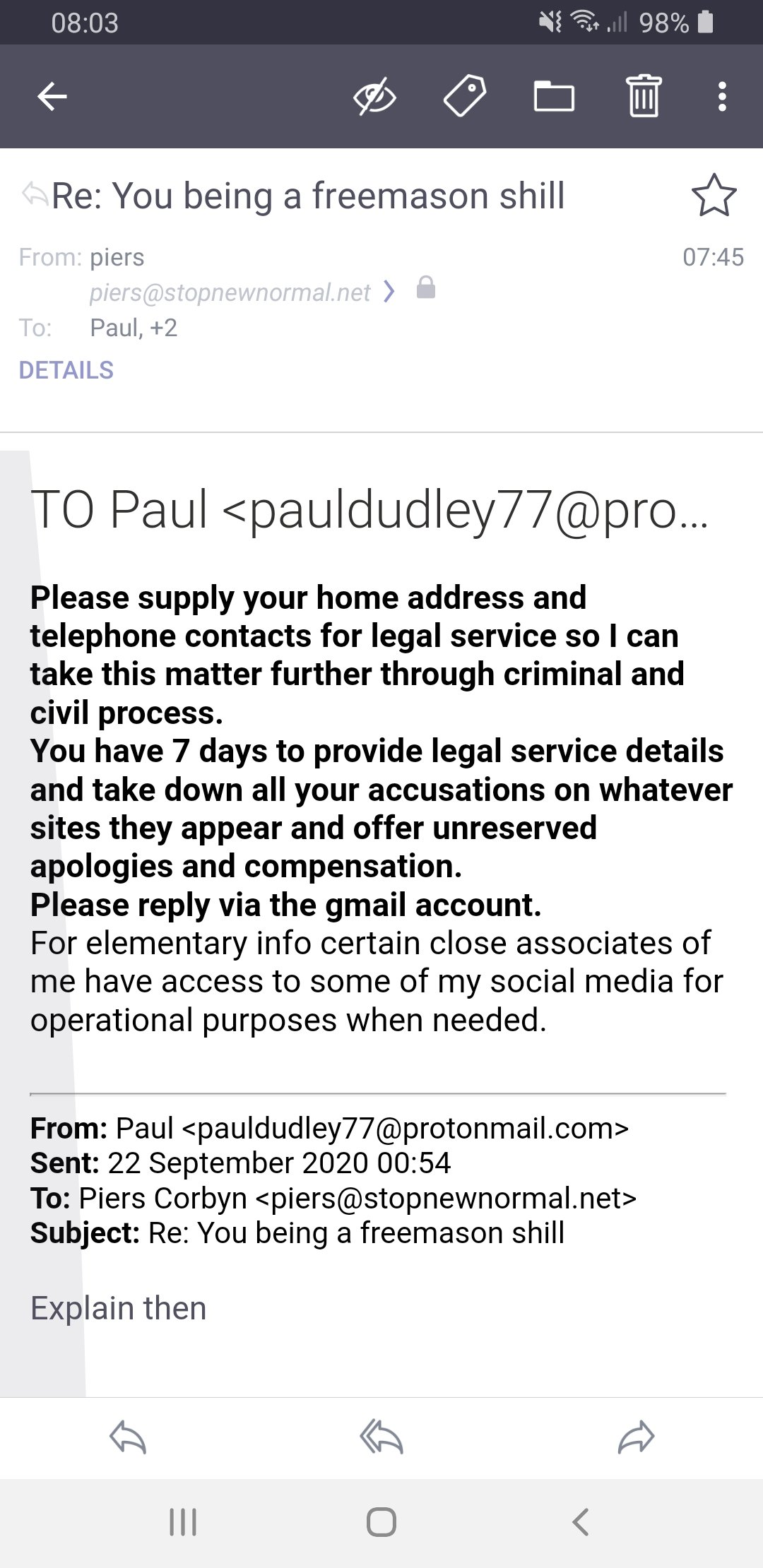 Piers has threatened legal action because I called him a freemason. Aren’t you wondering why he didn’t answer the question? You should be. However, if he does take me to court he will most definitely be asked that question – by me – under oath and you think that question won’t be allowed given the nature of the complaint? I guess we’ll find out won’t we because I don’t respond to threats.