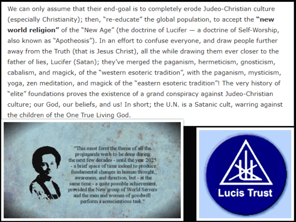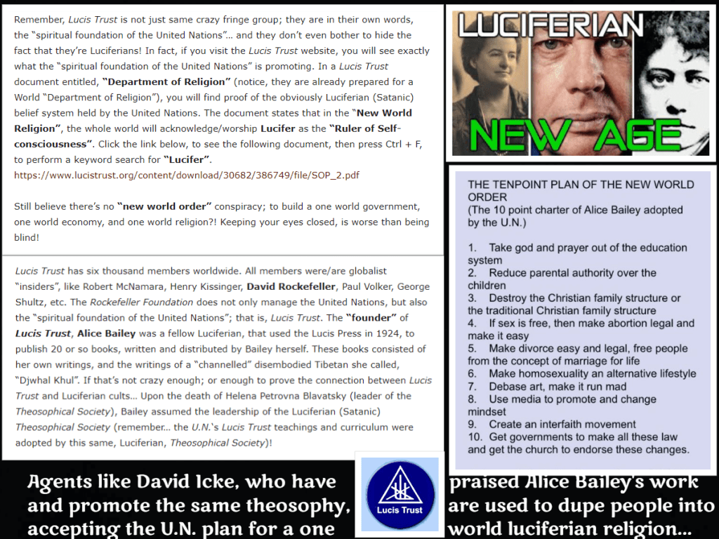 All of the gnosticism that David pushes is exactly the same as that pushed by Madame Blavatsky and Alice Bailey – which is also being pushed by the UN (the one world government we already have). These people are motivated by religion, not by wealth and resources they already own – including us. They own us from birth and David never mentions this, never mentions the Cestui Que Vie trusts, because he is one of them.