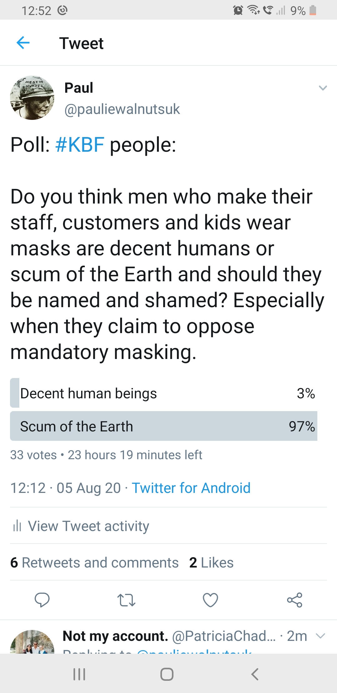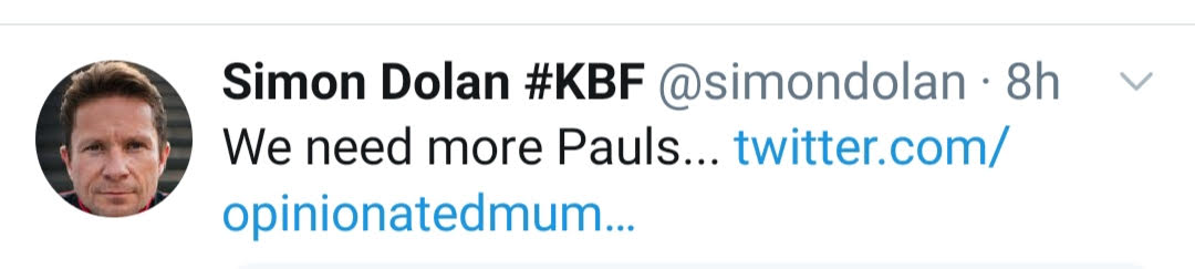 So after a few days of this there was a bit of a backlash on Twitter. People were removing their #KBF hashtags from their profiles and usernames after people began listening to what I was saying and joining dots. They still have a lot of followers because sheep tend to flock towards the lowest common denominator – and KBF are most definitely that – but there were a lot of people ditching their tags and starting to follow me. I referred to their hashtag as a ‘trampstamp’ as that is what it was really. It just basically shows people that you aren’t really awake or clued up about things at all. It was also clear to me that Simon Dolan suggested people put that hashtag on their profiles so they could be identified either as dissenters or as the easily manipulated fake awakes and I’d have to guess probably the latter.