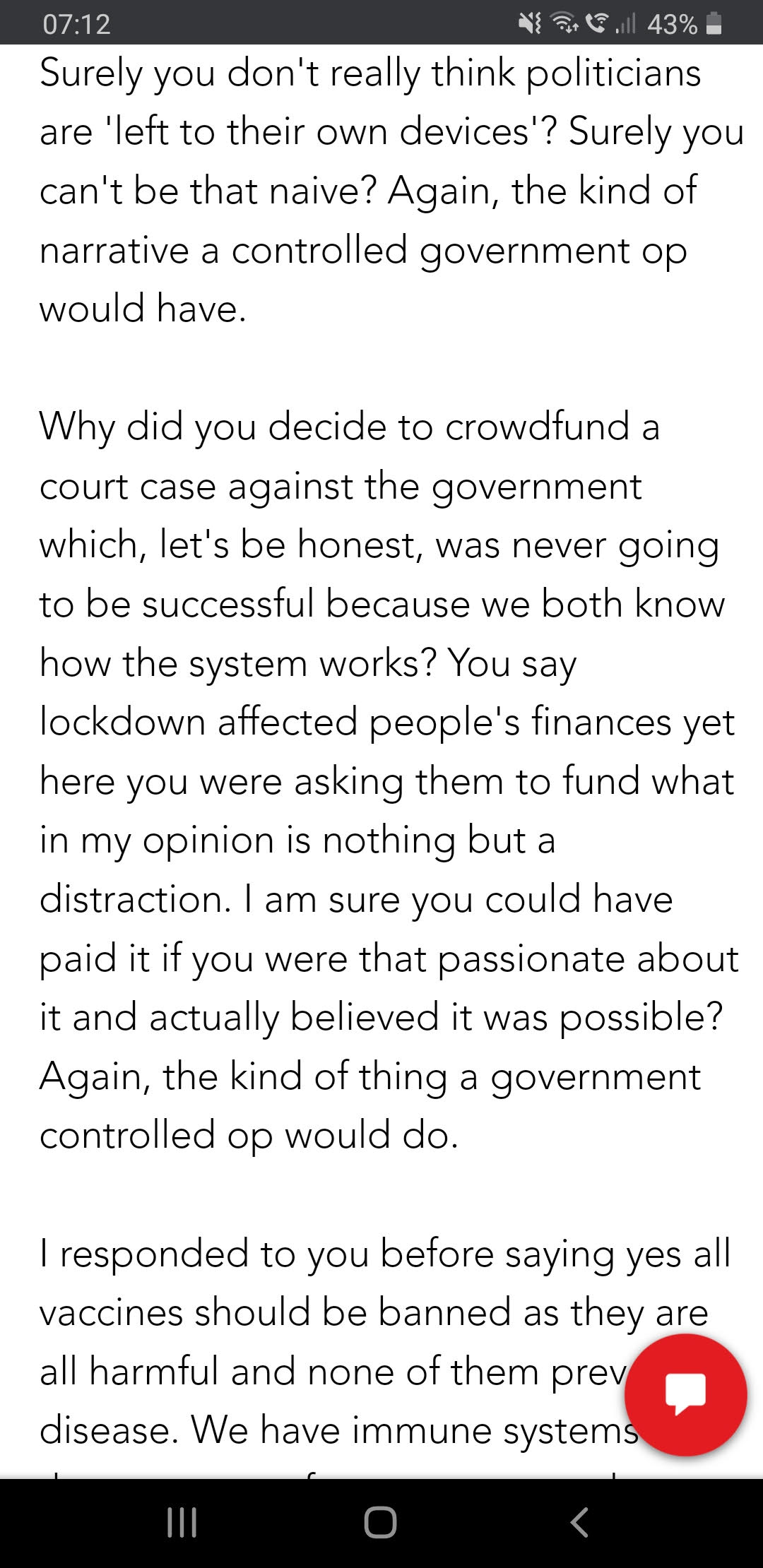 So why would he lie? And he clearly did lie… the only reason would be because he is a disinfo agent and he isn’t used to questions that go off script. He wasn’t expecting my questions but he thought I was just some div off the internet he could swat away but he bit off a lot more than he could chew. Not only did he fuck this question up, he also said that 5G is of no concern to KBF, despite many of his supporters thinking otherwise and he also said that vaccines generally do more good than harm which is an outright lie – vaccines offer NO benefit to us at all and cause diseases, severe conditions and death.