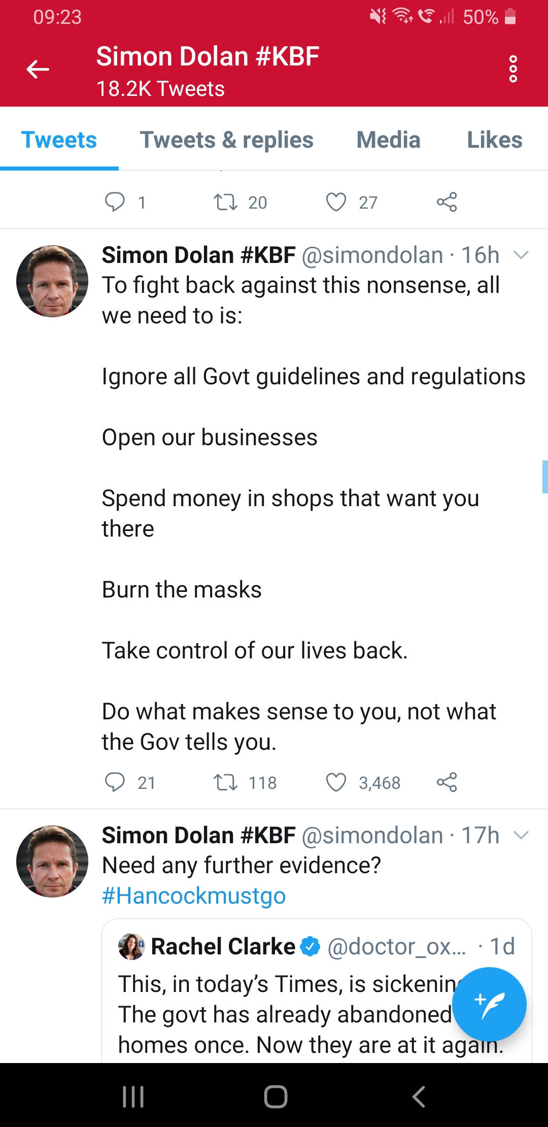 I first became aware of Keep Britain Free (KBF) when they tried to infiltrate our ‘Resistance’ group back in June. We had both only formed less than a week prior to this yet they had somehow heard of us, even though we hadn’t even set up properly… doesn’t that sound strange to you? It gets stranger when you consider that they are fronted by a multimillionaire, Simon Dolan, who only a few months previously was being paid to fly masks into the country on his private airline, Jota Aviation (remember that name) and posted on his Instagram account that masks ‘save lives’.