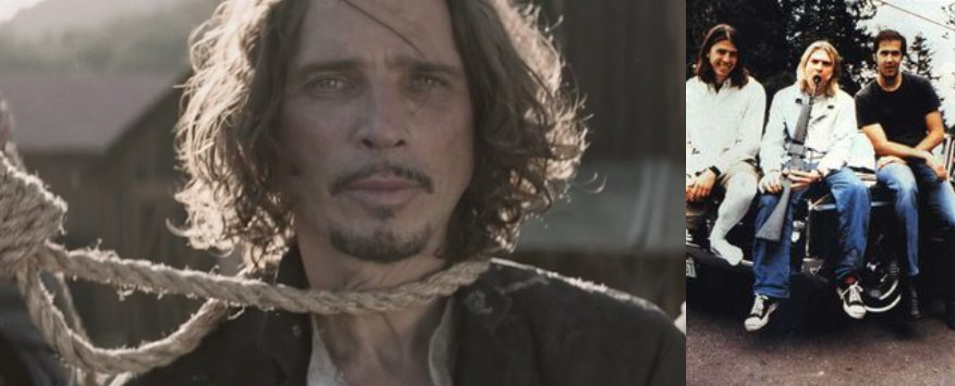 Another couple of fakers are Kurt Cobain and Chris Cornell of the grunge bands Nirvana and Soundgarden. I was a huge fan of both of these frauds too but facts are facts. The facts are that both of them have ’33’ names (KC=11×3; CC=33 – “Kurt Cobain” is also 33 in Chaldean gematria); both were pictured ‘foretelling’ their deaths (Cobain posing with guns in his mouth, Cornell posing with a noose around his neck); both sang about their chosen method of suicide (Lyrics to In Bloom, Come As You Are, I Hate Myself & Want To Die, Milk It, Like Suicide, Blow Up the Outside World, Pretty Noose) and both had the customary fake conspiracy theory to keep the fans interested and buying their merch – can’t have the pension fund drying up (‘Courtney had Kurt murdered‘; ‘Chris Cornell was investigating nonces with Chester Bennington and they were both murdered to cover it up – the fact that the workout band he supposedly hung himself with would not have supported his weight was made known for a reason). There is also the fact that Kurt’s ‘suicide’ scene just does not ring true for someone who has supposedly just blown his brains out – it looks neat, organised, staged…