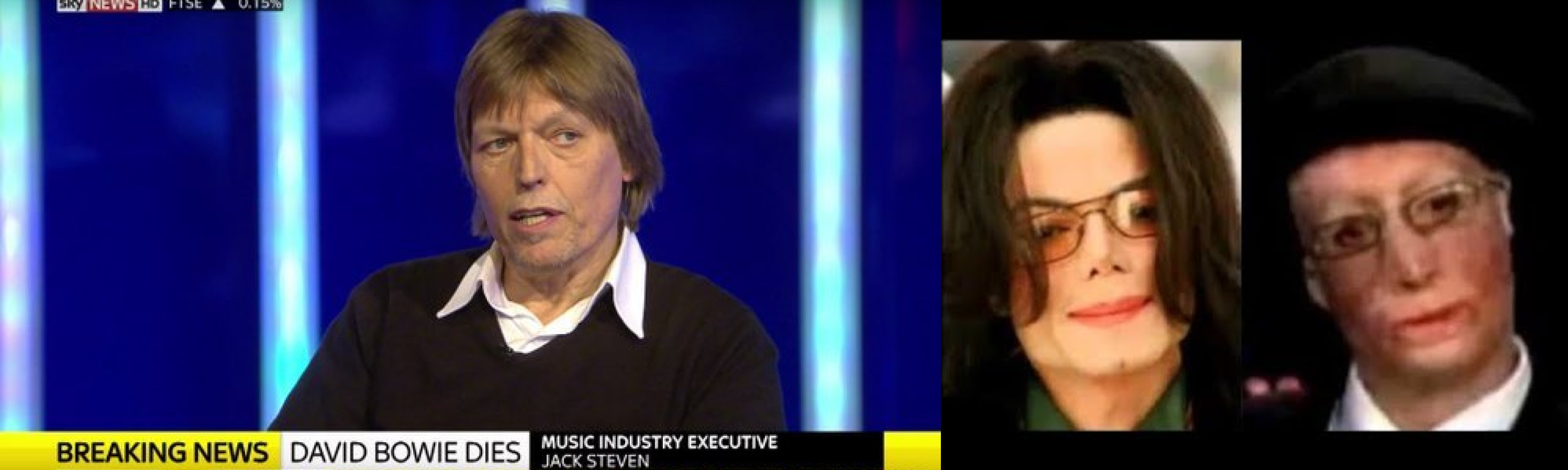The whole ‘27 club‘ of musicians who supposedly died young, mainly of supposed overdoses of drugs or alcohol – or both – is just a den of fakery and it is actually more the ‘9 club’ as many others are faked who ‘die’ aged 27, 36, 45, 54, 63, 72, 81, 90 etc. The benefit, to the controllers, of artists ‘dying’ is the elevation into ‘legend’ almost as soon as their death has been announced – no matter how unpopular or unsuccessful they were before they faked it. This will ensure a massive surge in sales of back catalogue albums, greatest hits and potentially DVDs too and ensures that there will be more interest in their back catalogue from future generations. Two other phoney frauds who were arguably the biggest stars of the 1970s and 1980s respectively and who faked their deaths and appeared on TV in disguise talking about themselves are David Bowie and Michael Jackson. It’s also worth noting that, like Lennon, Bowie had recently just ‘returned to form’ with his latest album. He appeared on Sky News as ‘Jack Steven’ – despite looking and sounding like David Bowie with really bad prosthetics and nothing at all like Jack Steven – talking about his own death. At one point he even says “I” instead of “He” and, if you’ve ever seen him in any of his film roles, this won’t be that much of a shock! His ex-wife, Angie, was also on TV talking about his ‘death’ and even managed to keep a straight face when she said: “David staged his exit beautifully” which makes her a better actor than him, that’s for sure. I also remember reading her biography of David about 20 odd years ago and she mentioned a party in LA where they were summoning demons and David being possessed. It’s an interesting element, especially when you consider all of the songs that he was supposedly writing about Aleister Crowley in around 1971. This is another interesting topic because, as we’ll see very shortly when we look at The Beatles, these artists have songs given to them by the controllers to push an agenda and this is very evident with Bowie when we consider his peak years in the 1970s.