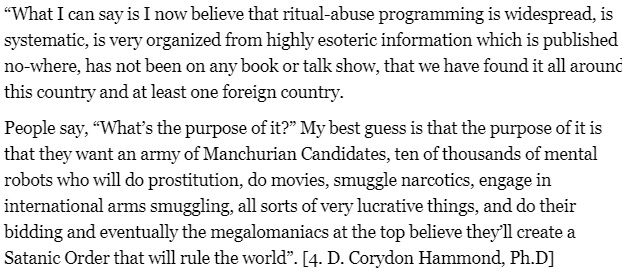 MK Ultra aka Trauma Based Mind Control works by splitting the victim’s mind into ‘alters’ – literally different ‘personalities’ in the same person’s brain that operate independently of one another, and can be called to the forefront of consciousness by the use of a code word or a signal, usually given by a handler. This is depicted in the film The Manchurian Candidate and I believe that this is an example of how Hollywood is used to peddle fake conspiracy theories for the CIA. I personally do not believe that the many ‘killers’ that have been labelled as ‘mind controlled’ or ‘programmed to kill’ were mind controlled or programmed to kill because I don’t believe the people they supposedly killed were actually killed. We will touch on this a little later and also in the blog in the series about political manipulation because this faking of deaths is often covered up by these ‘damage control‘ narratives that David Icke is very fond of pushing where, instead, a fake conspiracy is created to lead people down empty rabbit holes. MK Ultra is primarily used to control their ‘stars’ and to manipulate people via seduction by a mind controlled ‘sex kitten’ agent. Cathy O’Brien’s “Trance Formation of America” is a good introduction to this topic and it goes into detail about her experiences as a long-term victim of MK Ultra mind control. A lot of the victims of the sex trafficking industry – another industry that is completely controlled from the very top – the Black Nobility and the Committee of 300 – like everything else, are alleged to be the victims of MK Ultra programming.