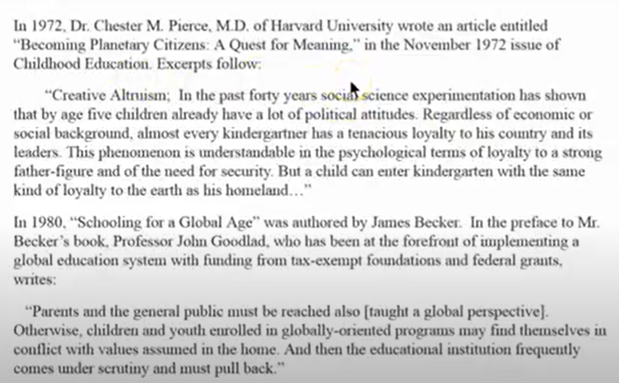So, we can see from the above quote that the plan for a ‘science’ controlled government, which we are very much seeing now if you take the word science to mean ‘complete lies’ which it seems to mean these days, goes back a long time. This is yet another reason why the ‘scientific’ lies of Part I were told. You can see from the quote below that the idea of politicising children is very real and is not a new concept. We can also see that parents are being brainwashed into buying into the globalist mindset too and we’ll be looking at this a bit later when we look at some of the scams being conducted to push the climate change/environmentalism scam we’ve established as fact is a scam from this blog. Now we need to take a brief look at Common Core and the curriculum currently being taught. The very idea of a National Curriculum, as we have in the UK, completely illustrates this agenda and Common Core is the same thing. You can learn more about what it is here and you can watch a video on the subject here. All schools are taught the same so that ‘they’ control the entire narrative and ensure that there are as few dissenting voices as possible. They also use censorship for this and we’ll be looking at that in Part VI when we look at the divide and conquer trick.