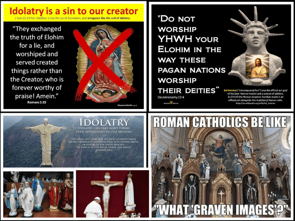 The Bible also tells us not to worship graven images or to engage in idolatry – the very opposite of what Catholicism encourages and promotes. The Bible explicitly tells us not to do this – not even a cross – and yet we see idols and icons and graven images in every Catholic church (and most other churches), often containing overtly pagan and Satanic imagery – such as The Vatican itself.