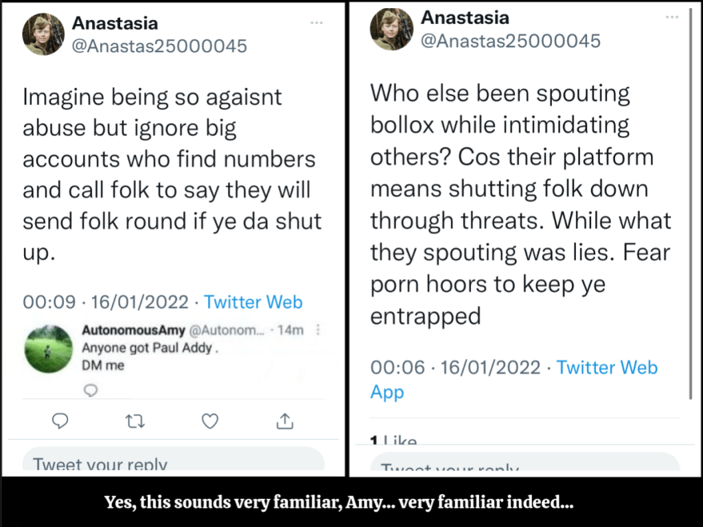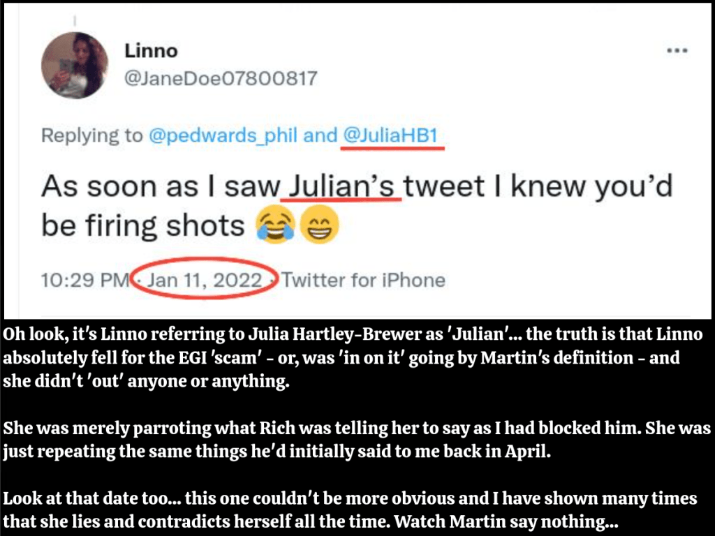 The biggest red flag of all is when these shills say things about someone that they absolutely know to be false – and there will be many examples of baseless,unfounded smears against me throughout – such as Jo saying that Andy and I are the same person when she knows for a fact that we aren’t.