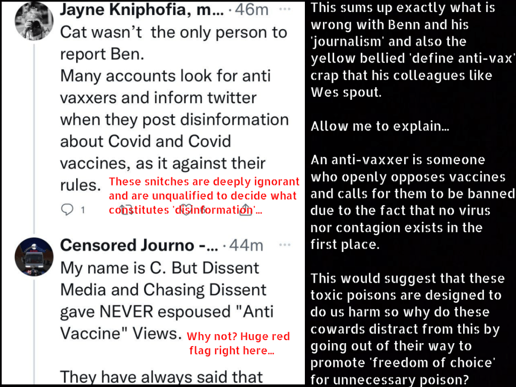 I’d like to say a quick few words to Benn: This is what REAL journalism is – Factual, accurate, against the state narrative and exposing deceivers for what they are, despite being genuinely persecuteded and harassed for it – despite working full time and not charging a penny for it. This is what integrity is…