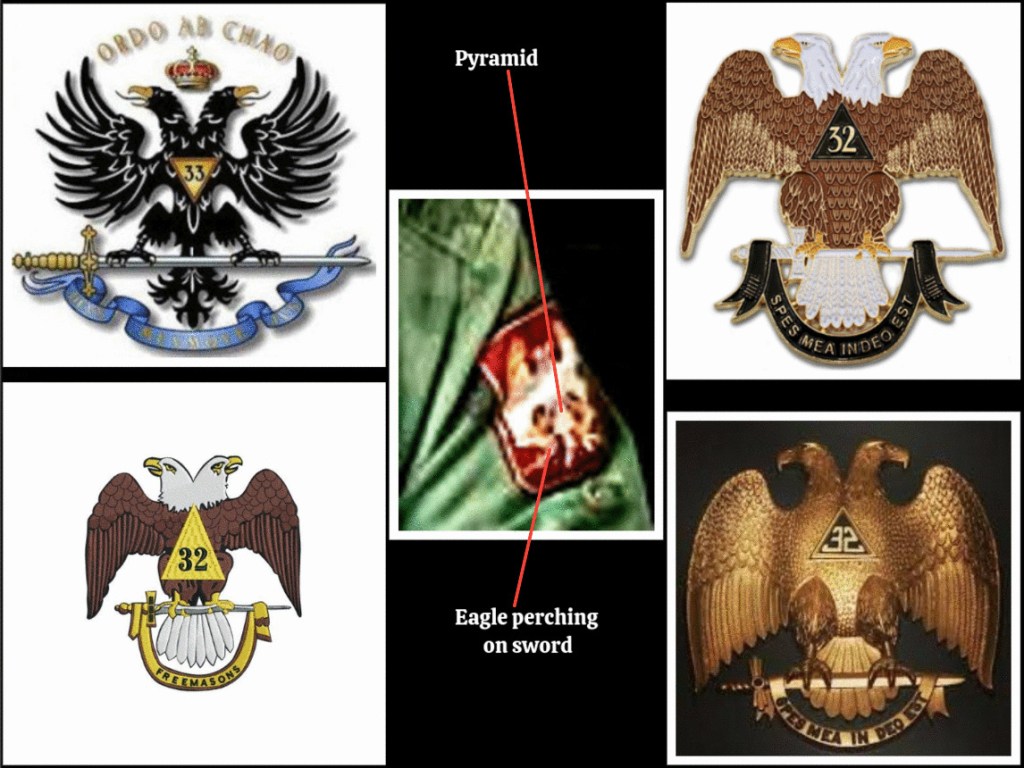 This double headed eagle perching on a sword is a freemasonic symbol – again, this is not my opinion and nor is it me being ‘nasty’ – it is a fact and you can read about this here and here…