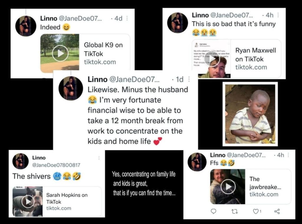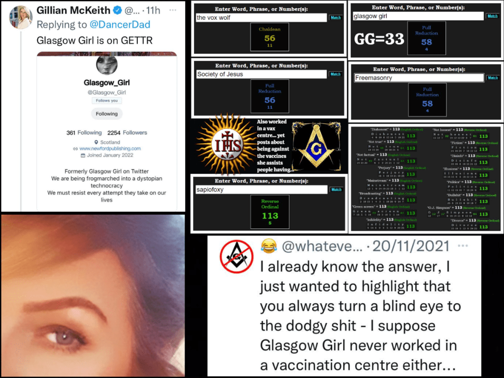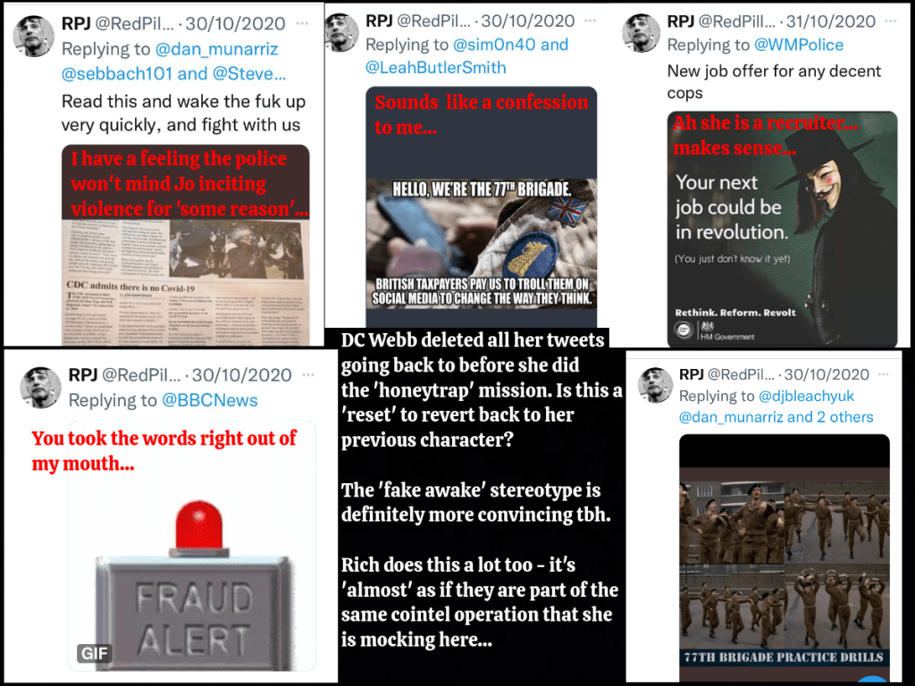 Jo first appeared on the Twitter ‘troofer’ scene in May 2020 (according to her – I am sure she was around a short while before that) and I believe that her main roles are to harvest data (e-mails, phone numbers etc – she asked for my number when we’d barely chatted, like a few of the others in the web) and to spread fearporn/incite civil unrest.