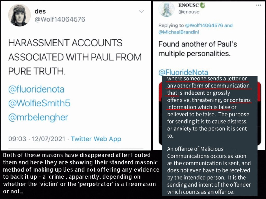 Thank you all very, very much for persisting all the way through this very long blog. I don’t usually ask people to share anything but I would very much appreciate it if you could share this on any platform that you can as I would like as many people as possible to understand who these people are, how they operate and how the state persecutes innocent people who have committed no crimes just because they expose freemasons.