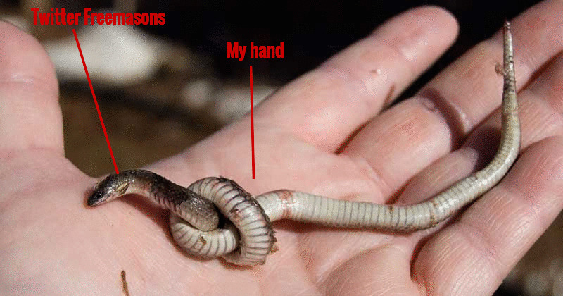 That’s what freemasons like them do though and is definitely not my style. Just watch out for the idiotic stuff he says regarding the law, ignore the embarrassing nonsense like ‘all taxi drivers and teachers are freemasons’ because of the gematria, don’t bother engaging in his narcissistic arguments that will see you blocked when he can’t get his own way – like a freemason – and you will learn a fair bit from him…