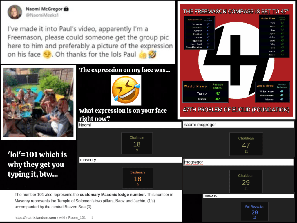 When it’s one name you get the benefit of the doubt, when it’s your name, initials, email, usernames etc with multiple other examples of red flags – even having three children with a very clear and obvious freemason – then it’s game over – especially when your actions align with the numbers – and that’s before we even get into the police conduct…