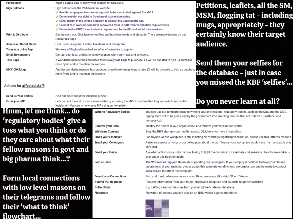 She later claimed that these hypothetical ‘direct action’ groups she was calling for should ‘steal’ Stand Up X’s (freemasonic) logo to attract their followers (aka shills and sleeping sheep) – in other words, she was calling for Stand Up X, only being led by less obvious freemasons than the ones that do lead them… now why would she be calling for that? It’s a real mystery, innit?