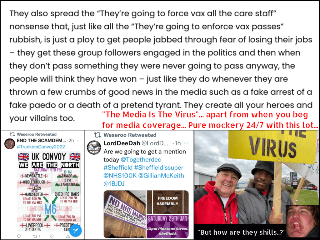 Jo was more convincing when she played the fake awake because then it wasn’t such a blatant red flag why she’d support someone who ponces money to distribute a ‘truth paper’ that Jo knows is pure misinfo – not least because the very first front page was what Jo knows to be Corbyn’s fake arrest in Sheffield, presented as real. It is the clear links between these shills that ultimately gives up their huge network – and what I am revealing here is merely the tip of the iceberg…
