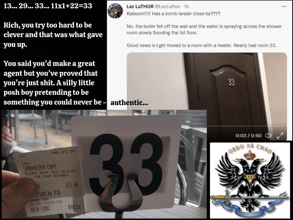 After we fell out, I jokingly had Jo’s name (33) from Gematrinator as my Twitter banner when a couple of people told me she was ‘controlled ops’ – something I laughed off for a good month or so, against my better judgement – and this seemed to annoy her a lot more than it should have done if there was no truth in it. Her behaviour only started making sense when I started listening to these ‘controlled ops’ claims – and when I did a little digging I found out why…