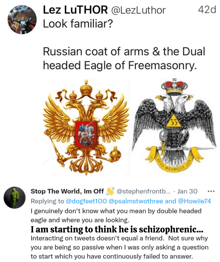 This was the catalyst to me uncovering what I had long suspected about a few of them but had no idea of the sheer scope of it – that Twitter is a cesspit of freemasonic deceivers manipulating people. It’s nothing more than a LARP psyop carried out online…