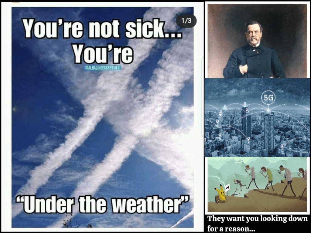 Weirder still, she was pushing the blatant misinformation being spread by Des and Cheryl i.e. that vaccines ‘shed’, that the flu vax was ‘tampered with’ and that ‘the vaccine is the virus’ – even though she knows that viruses don’t exist. “Be like Des, do your own research”, she says…