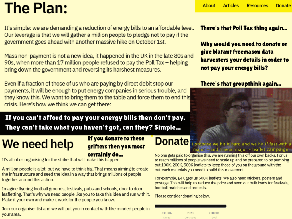 All these groups ever do is try to convince supposedly ‘awake’ people to write to their MPs, to sign petitions, to attend state controlled protests against the state that they supposedly ‘do not comply’ with (and with the state’s permission), to fund court cases that they are never going to win (by design), to donate money to a bunch of millionaires who are supposedly ‘concerned’ about their ‘fight’ – yet won’t put their hands in their pockets (because they are freemasons) – and to buy their tacky, overpriced ‘merch’ – all in the middle of a supposed ‘cost of living crisis’ too, I might add…