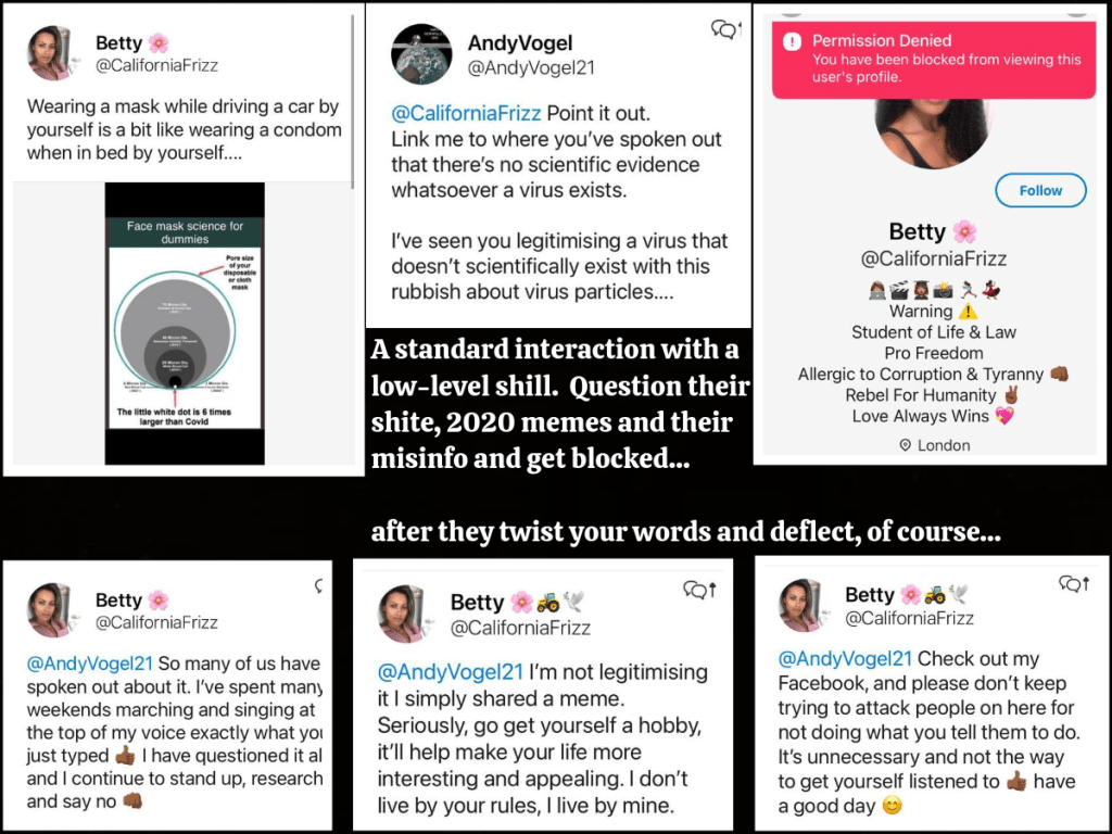 I will show how they operate together to control the narrative and how they exploit the naivety, wilful deep ignorance and unwarranted arrogance of the ‘fake awake’ followers they target to achieve this – and how they mock them for consenting to it…