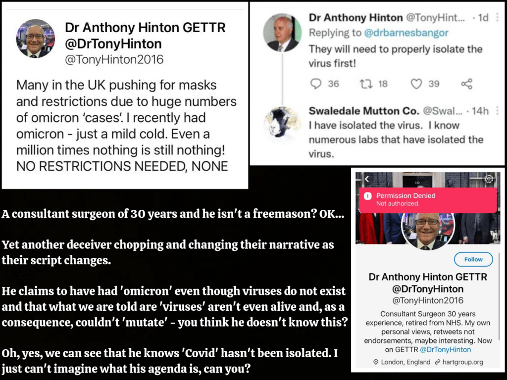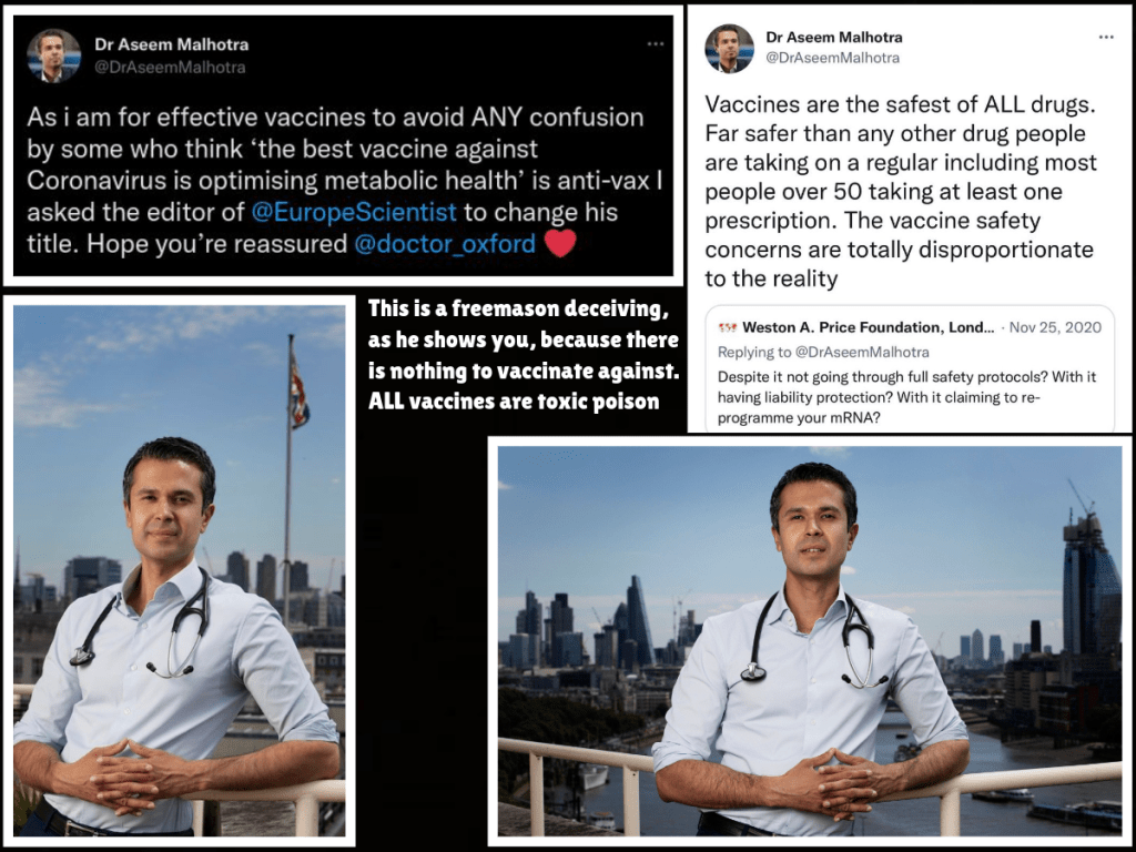 These two charlatans refuse to state that ‘viruses’ and ‘contagions’ don’t exist and that all vaccines are harmful poison because, like all the others, they are employed by the state to divide, deceive and distract you and it isn’t because they ‘sold out’ or have been ‘paid off’ – or because they’ve been ‘compromised’ – it’s because they are freemasons…