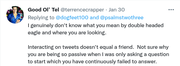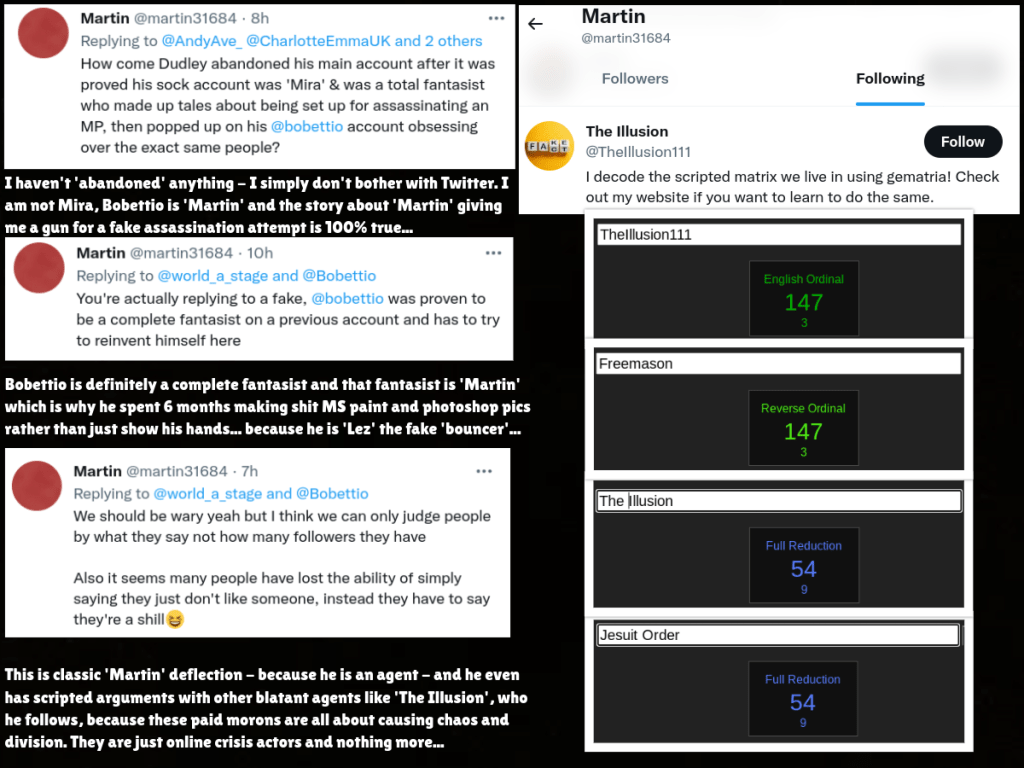 It’s also funny how ‘Bobettio’ (who types in a very unnatural way, like someone trying too hard to hide) doesn’t respond to ‘Martin’s latest tweets – I guess he either forgets to, which is understandable given how many accounts he has, or that he is attempting to claim that Bobettio is ‘scared’ of him (why would anyone be scared of ‘Martin’? He can’t even answer basic questions or show his hands)…