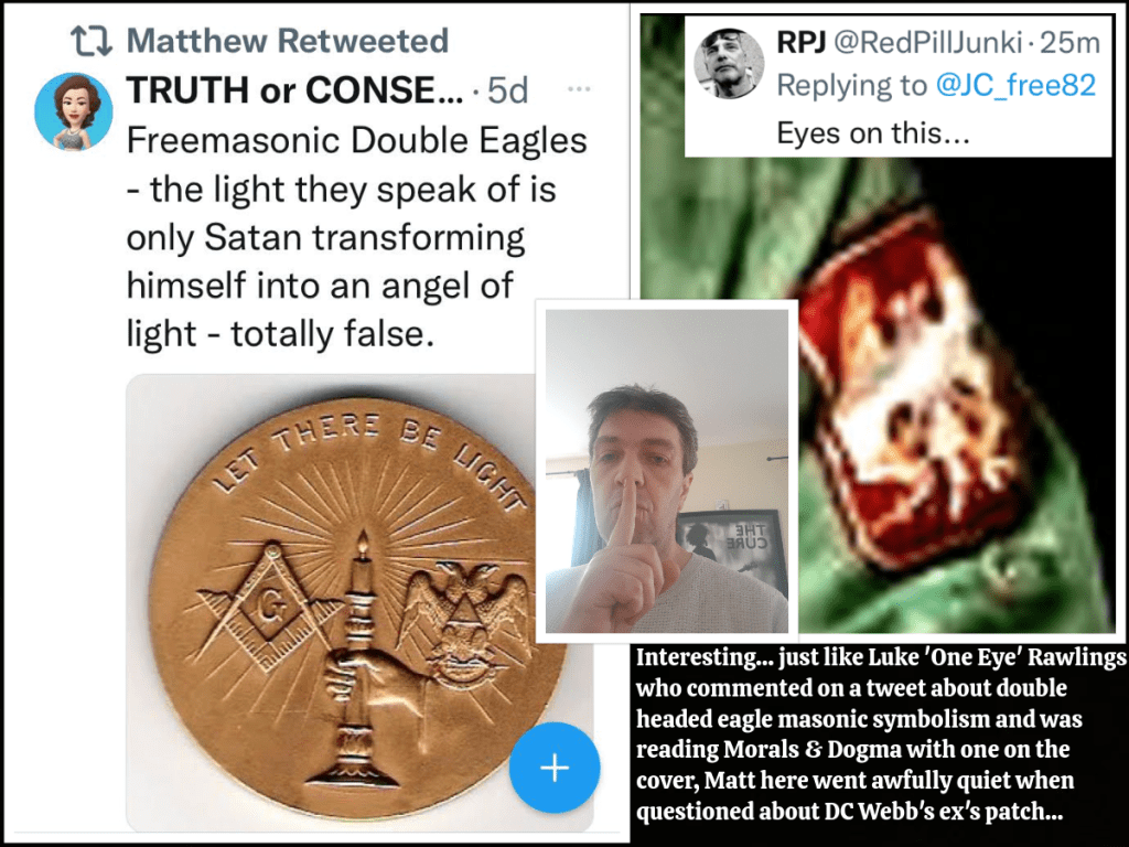 Matt also piped up in defence of the GB News and ‘Together’ shills when they were accused of being freemasons after Dan Wootton’s ‘pyramid’ handsign whilst paying his respects to a (long) dead freemason. He jumped onto a thread by another fake ‘Christian’ freemason, Calvin Robinson, stating that I had falsely accused him of being a freemason due to the masonic handsigns he claimed he had posted as a ‘joke’.