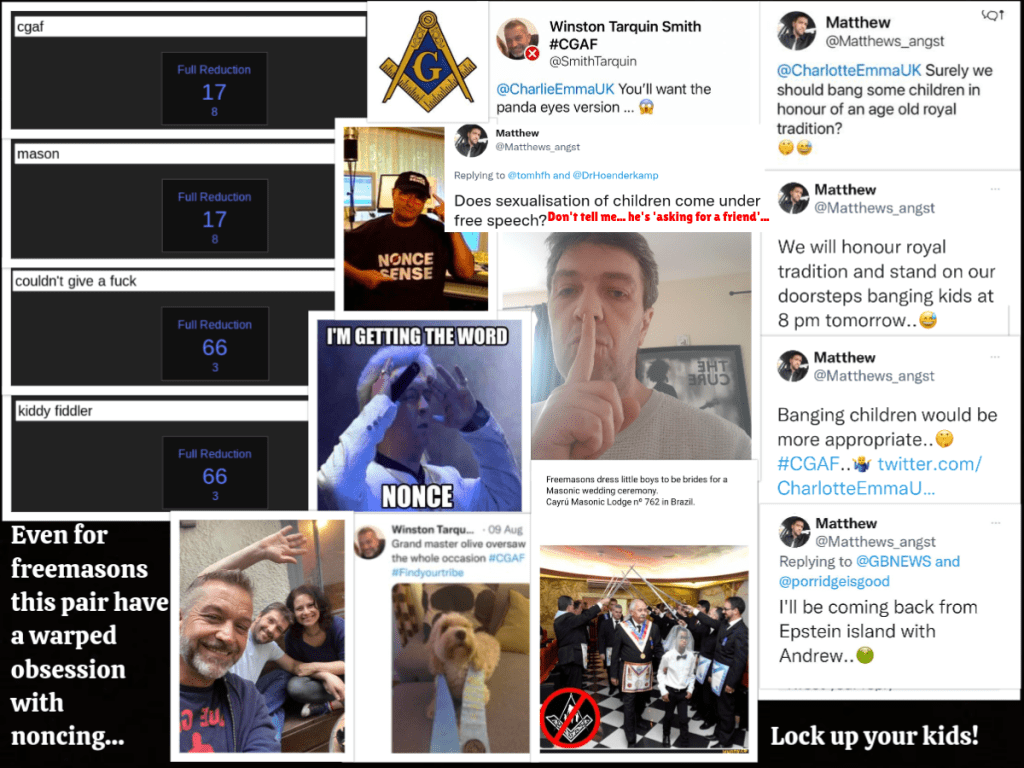 Speaking of Wayne, him and Matt seem to have a very unhealthy interest in sex with children and, given that they show us they are freemasons, it shouldn’t be too surprising. Now, I am not saying that these two are a pair of nonces, that’s for you to decide – I am simply objectively showing their tweets that suggest an unhealthy interest in the sexual abuse of children…