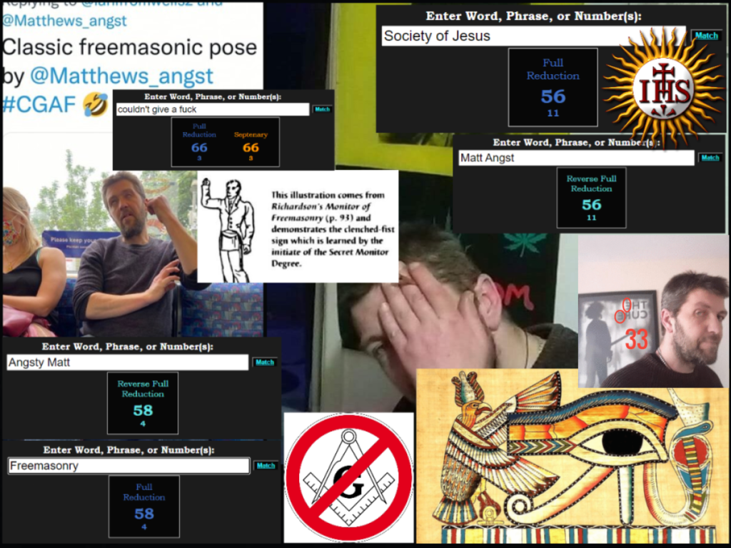 When I don’t post for a while, Matt gets brave and pipes up with the usual retarded stuff about me supposedly ‘stalking’ women and me supposedly exposing his masonic handsigns, gematria, pushing big pharma poison for non-existent ‘viruses’, being a fake ‘Christian’ (like ‘Martin’) who follows freemasons (like ‘Martin’), refusing to oppose all vaccines, pushing obvious fake stories and psyops etc etc because he is ‘mates’ (colleagues) with these (alleged) women.