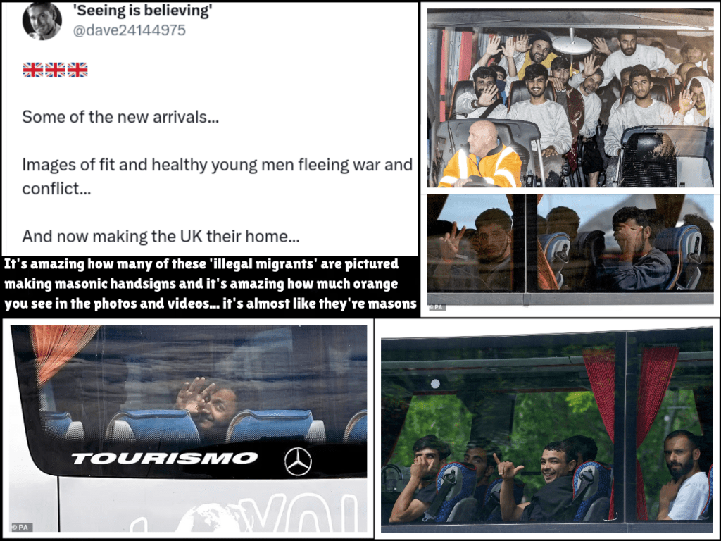 The videos they show are all the same – they all show these crisis actors playing migrants making the same masonic hand signs and they’re all shared by the same shills pushing the same agenda. Like so many ‘viral’ videos, they also contain a lot of ‘orange’ in them for the ‘33’ to show those with eyes to see that it’s a creation of freemasons.