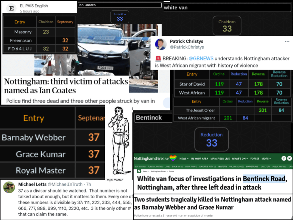 One thing I feel I should mention before we start is the subject of gematria. I don’t really want to go into too much detail here but, as I have stated in previous blogs, freemasons use this form of numerology to code the fake news stories that litter the media, the staged hoax events that they create and even their supposed names and their usernames on social media.