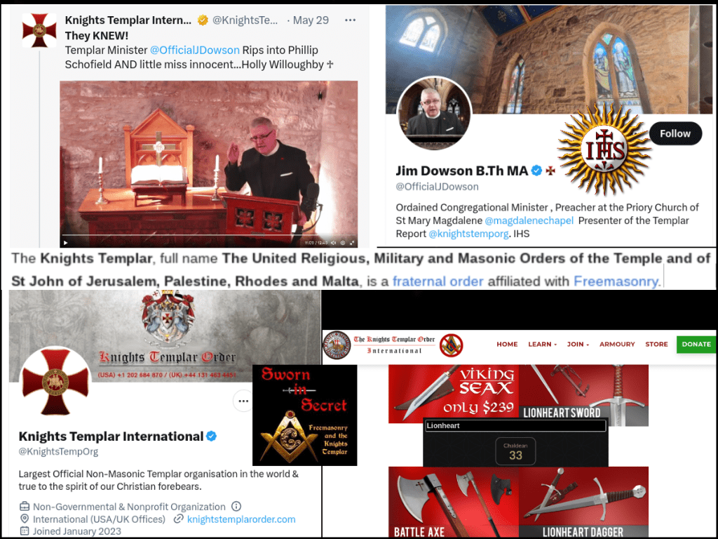 As I mentioned earlier, Tommy’s ‘English Defence League’ even used the symbolism of the Knights Templar – which should show you that they are a masonic group – and another group that uses this symbolism is Britain First founder Jim Dowson’s Knights Templar International (which laughably claims to be ‘non-masonic’) – which is also heavily supported by ex-Britain First Deputy Leader, Jayda Fransen.