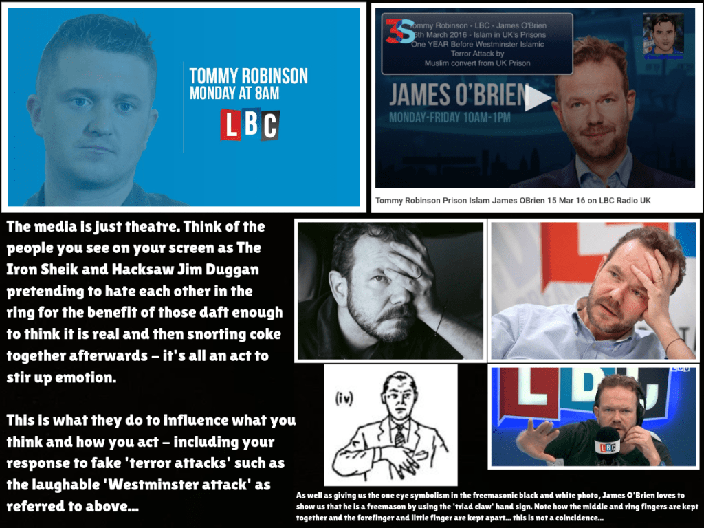 Freemasonry controls all sides because freemasons know that the vast majority of human beings are nothing more than unthinking, easily manipulated herd animals that need a ‘hero’ in the media to speak for them because they have nothing to say for themselves and lack the confidence to say it – which is how freemasons like Tommy get the platform they do. You see, Tommy claims to be an ‘enemy of the state’ yet we know that he works for the state because he appears on every single media outlet going in the UK (and many others abroad) and that only happens if you are ‘in the club’ – and that ‘club’ is freemasonry – no exceptions whatsoever.