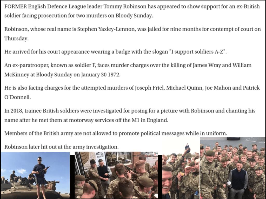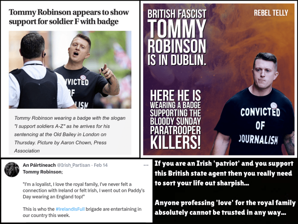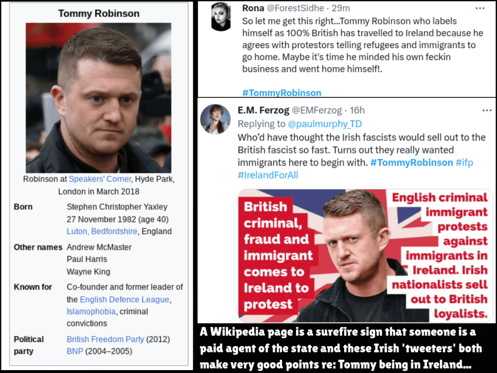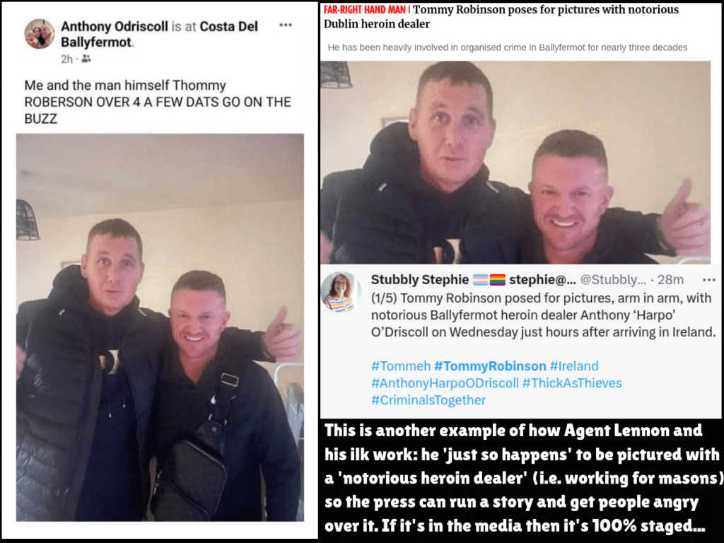 Tommy promotes the fake terrorism psyops and you should know better than to persecute people and brand them as ‘terrorists’ given the way the Irish were treated in the UK during The Troubles, particularly in the 1970s and 1980s. What is wrong with you Irish “Nationalists” (besides patriotism) when you align with someone who literally stands against everything you claim to stand for?