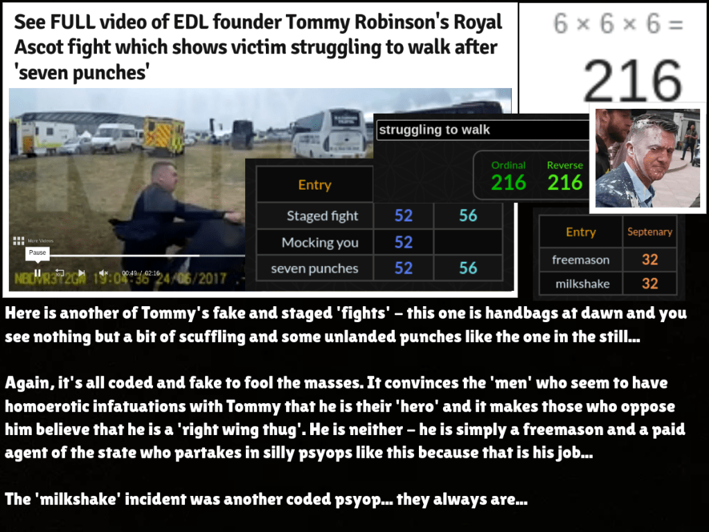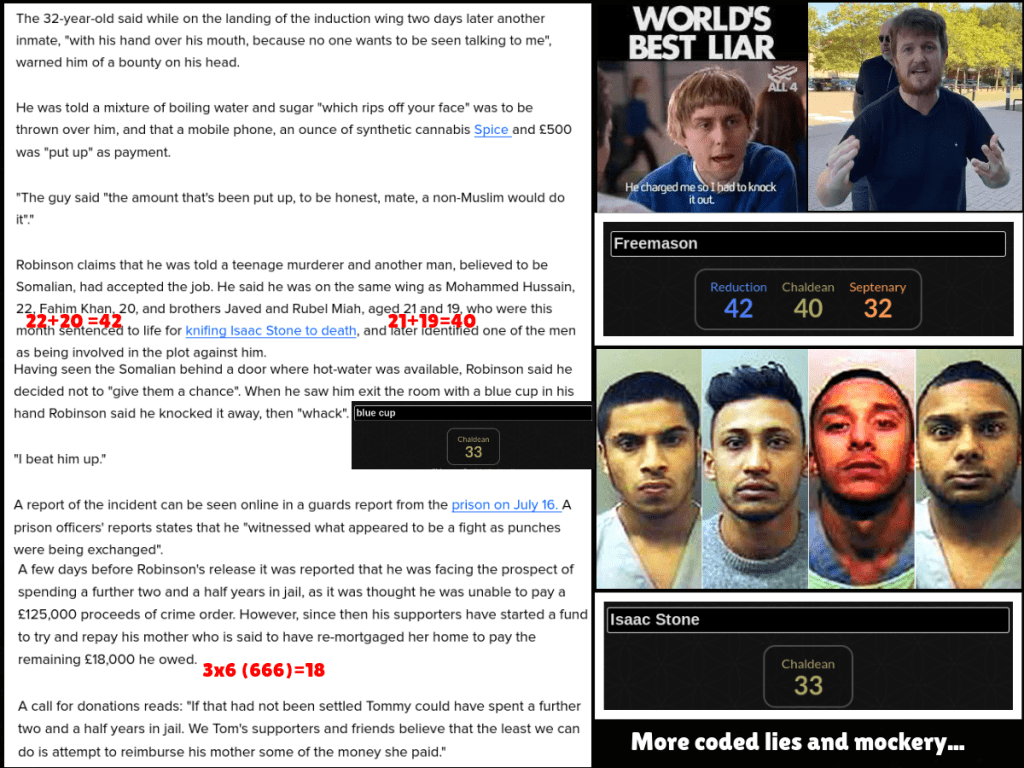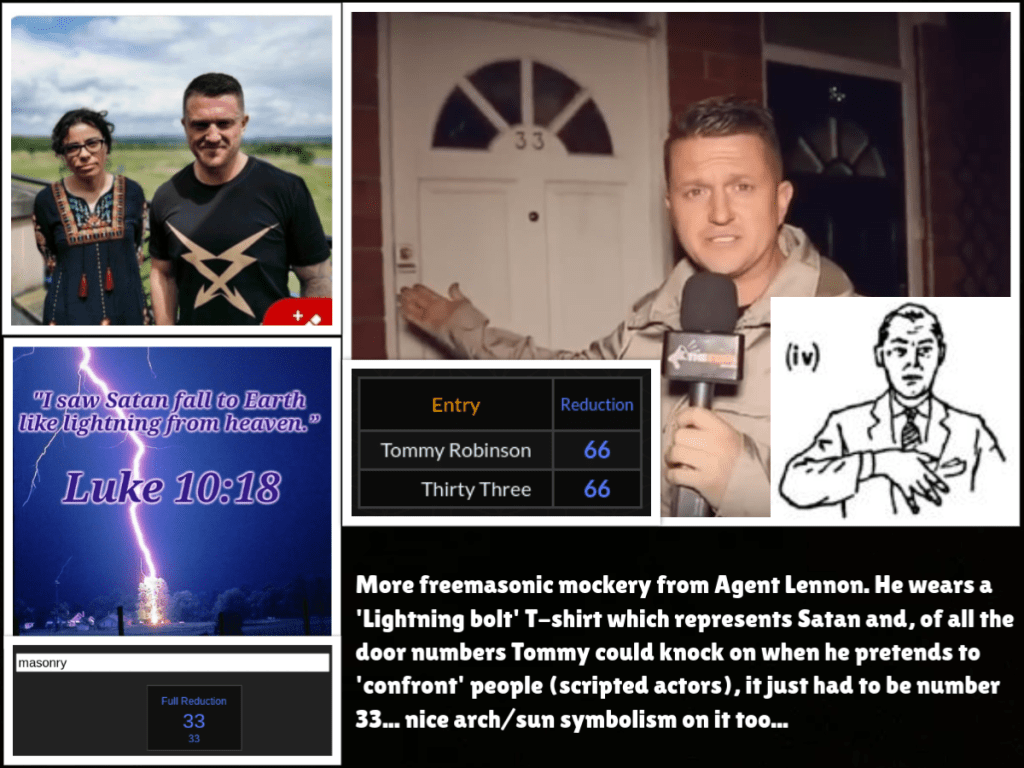 I’d also recommend watching the video above to understand how they code these fake events with gematria, particularly using the number 33, and that you read the books Letters and Numbers and Number Games:9-11 to Coronavirus for a more in depth understanding. I will go into more detail on the actual agenda later but, first, let’s focus on so-called ‘Tommy Robinson’. Are you sitting comfortably? Then we’ll begin…