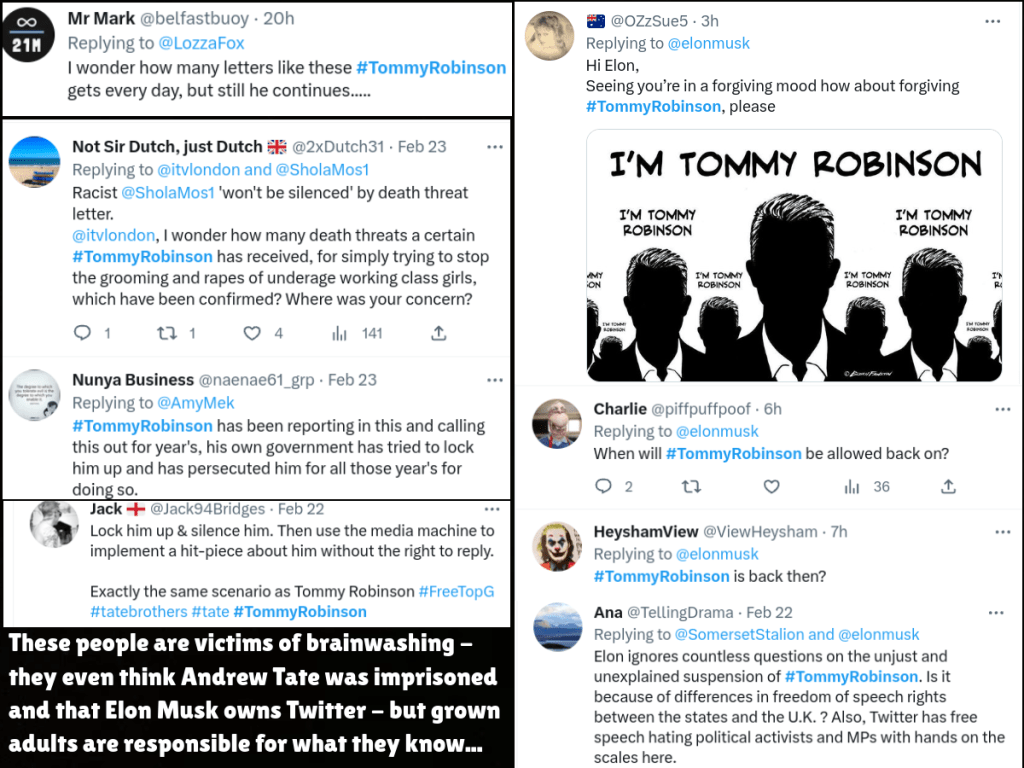This division is fuelled by the media because the carefully planned criticisms of the Tommy character – which he is in on, obviously, as he is just a state agent playing a role – do include many claims that would be ‘unfair’ if Tommy was a real person and not one of their assets. For example, of course Tommy should have the right to free speech – whatever his views are – because no man has any authority to tell anyone else what they can and can’t think or say. This is something that those on ‘the left’, in particular, seem to find hard to grasp.
