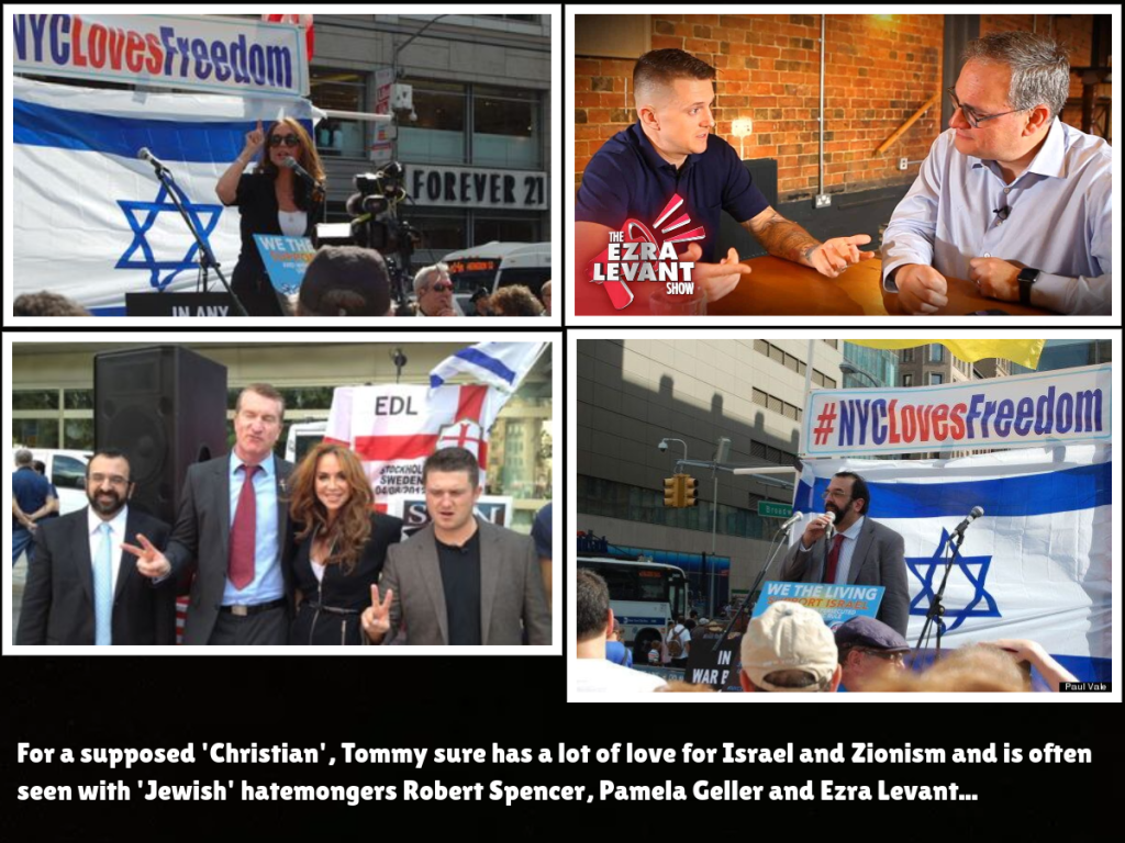 If you look at Tommy’s rhetoric, it’s pretty easy to see who his target audience is and what agendas he pushes. As well as the obvious, cringeworthy ‘lad culture’ persona (boozing, snorting coke and ‘fighting’) he propogates, Tommy laughably purports to be a ‘Christian’ and a ‘patriot’ (aka someone suffering with severe Stockholm Syndrome) who ‘loves his country’ and doesn’t like those bleedin’ Muslims coming over and bringing their ‘third world, barbaric culture’ with them. He pushes support for Israel – one of THE biggest red flags going – and even claims that he would ‘fight for Israel’.